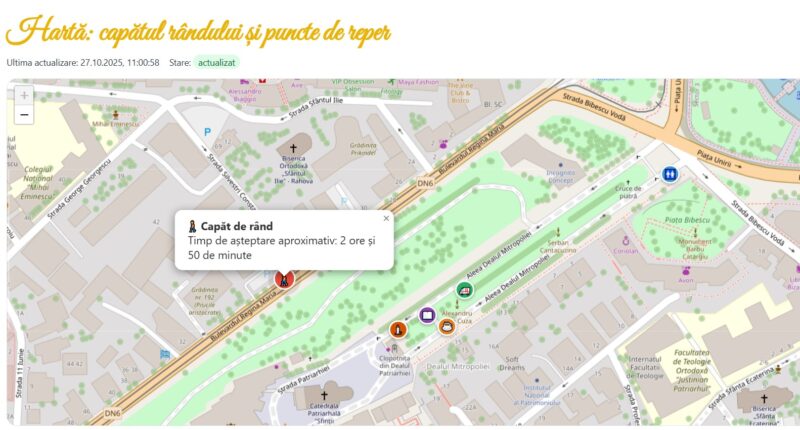 Arhiepiscopia Bucureștilor a realizat o hartă interactivă actualizată în timp real, care arată unde se termină rândul credincioșilor veniți să treacă prin altarul Catedralei Naționale, transmite Agerpres.