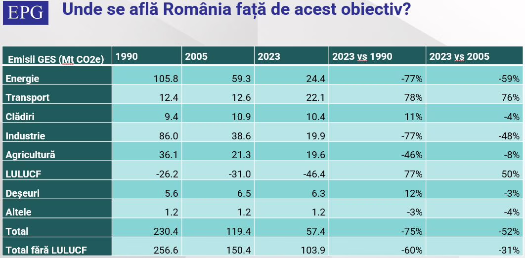 România stă cel mai bine la capitolul decarbonizare a economiei dintre statele membre ale Uniunii Europene, în special pentru că mare parte din industria anilor 1990 a fost închisă. Cu toate acestea, ținta de reducere a emisiilor pentru anul 2030 poate să nu fie atinsă din cauza emisiilor din sectorul transporturilor, avertizează Energy Policy Group (EPG) într-un raport citat de Economica.net.