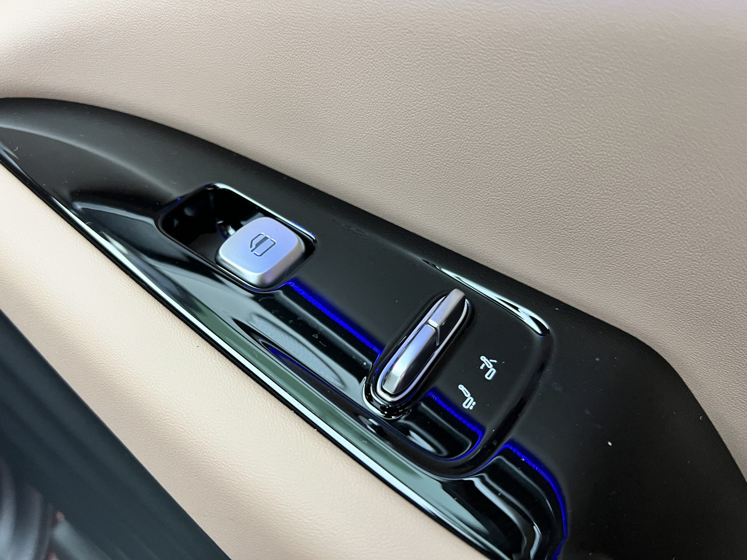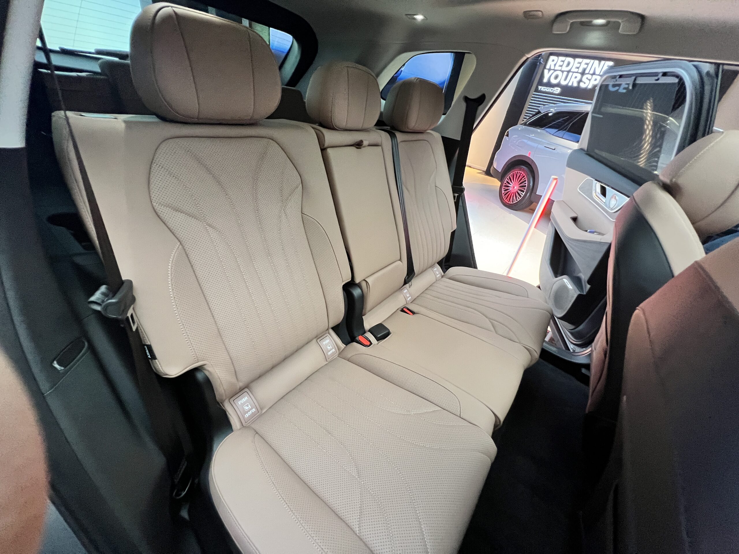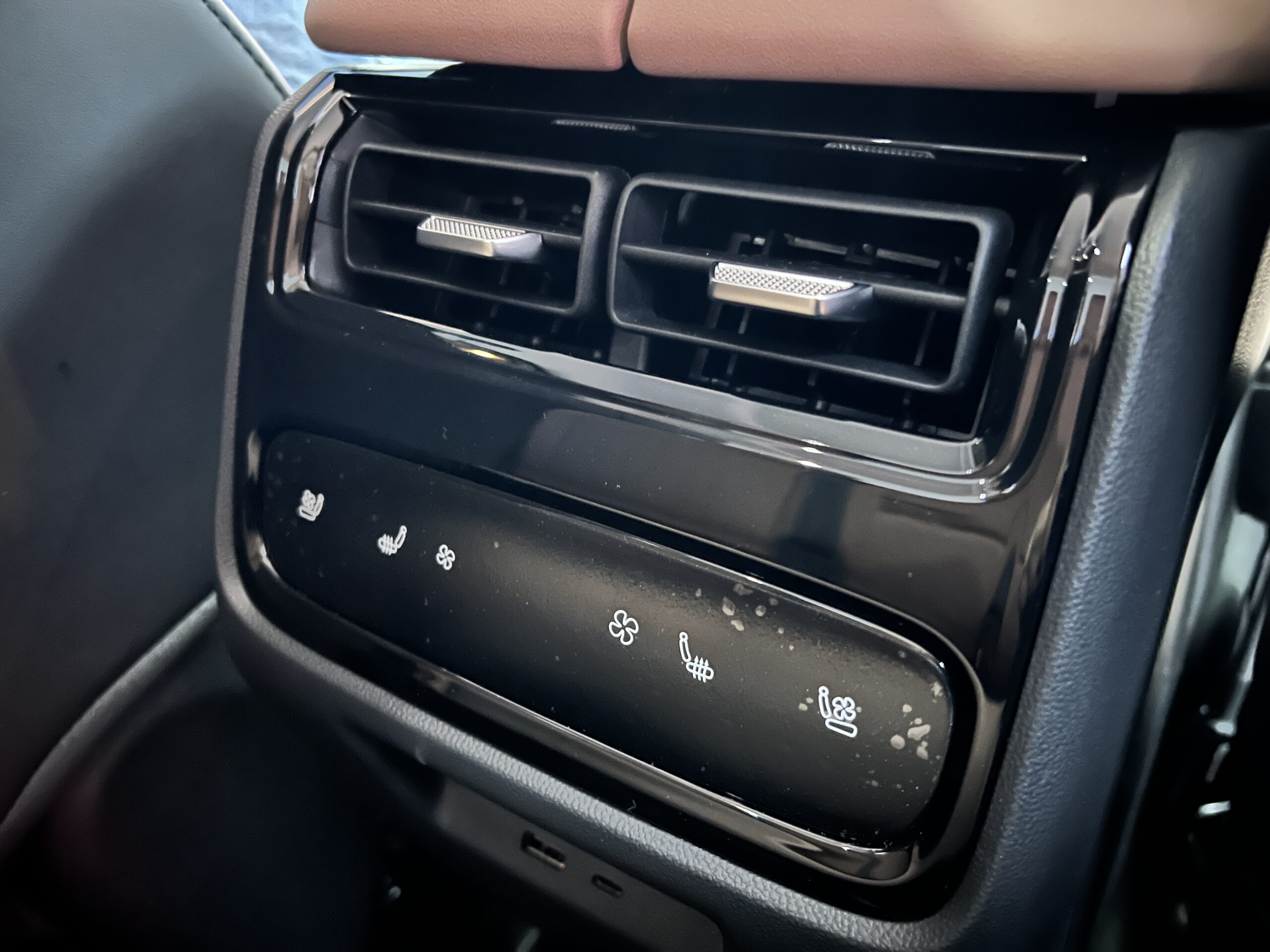 Pasagerii din spate nu sunt uitați. Bancheta, care are distribuire 60/40, este reglabilă electric, cu un grad destul de mare de ajustare. Ocupanții locurilor din spate pot alege de temperatură vor, nivelul ventilației, dar și dacă vor ca scaunele să fie încălzite sau ventilate. Scaune încălzite în spate am mai văzut și la alte modele mai ieftine, dar scaune spate ventilate mai rar. Locurile sunt destul de generoase, dar pot părea puțin înghesuite, mai ales dacă șoferul și pasagerul-față sunt mai înalți.
