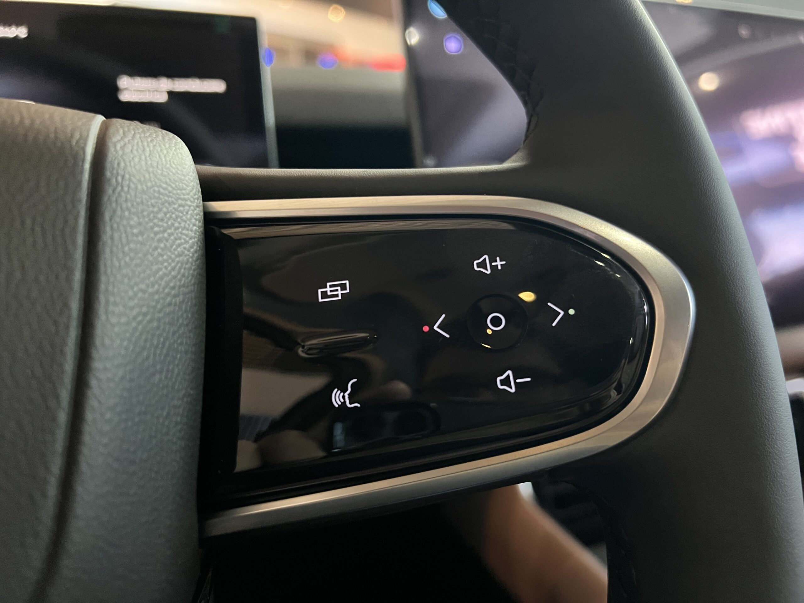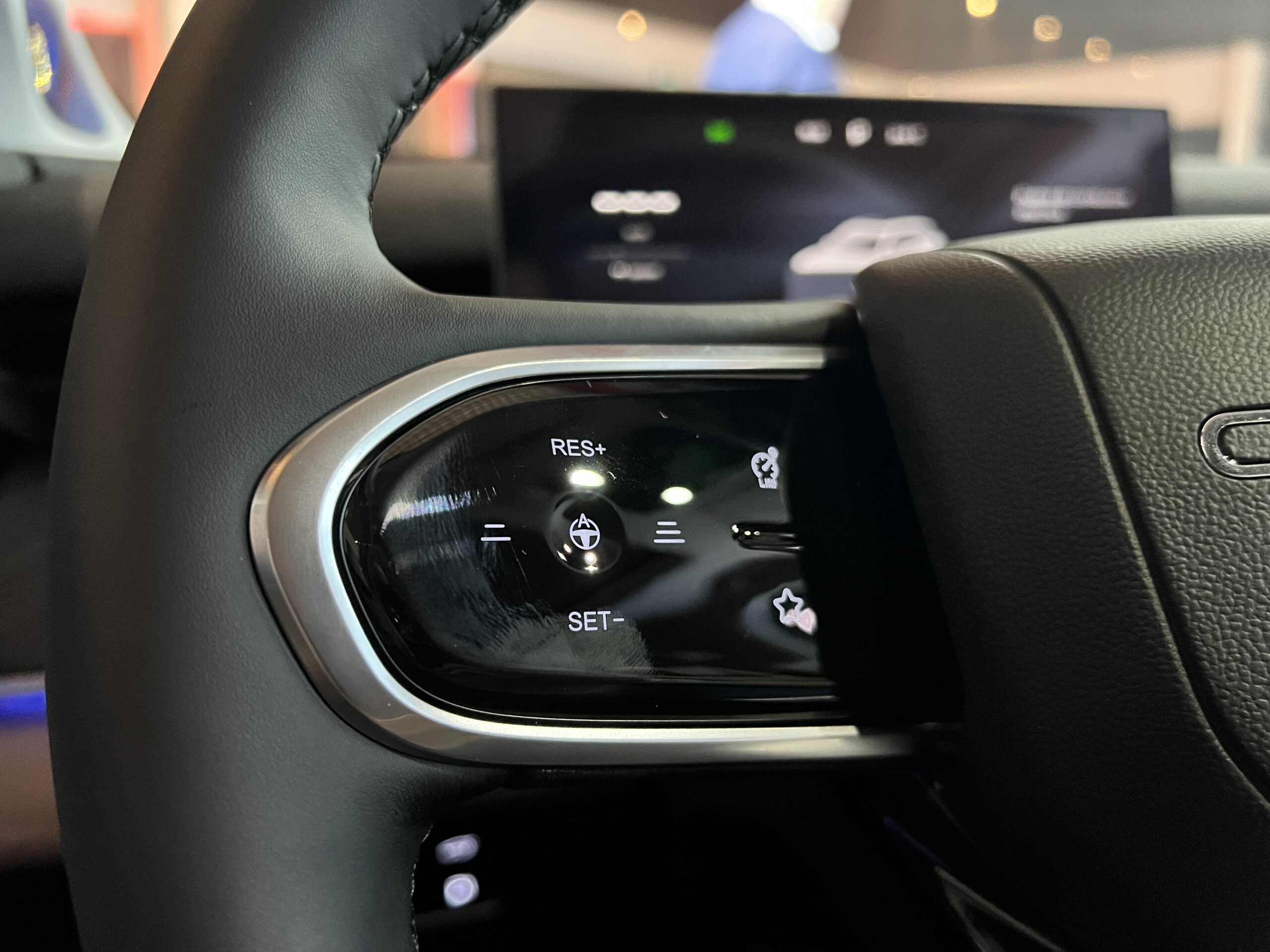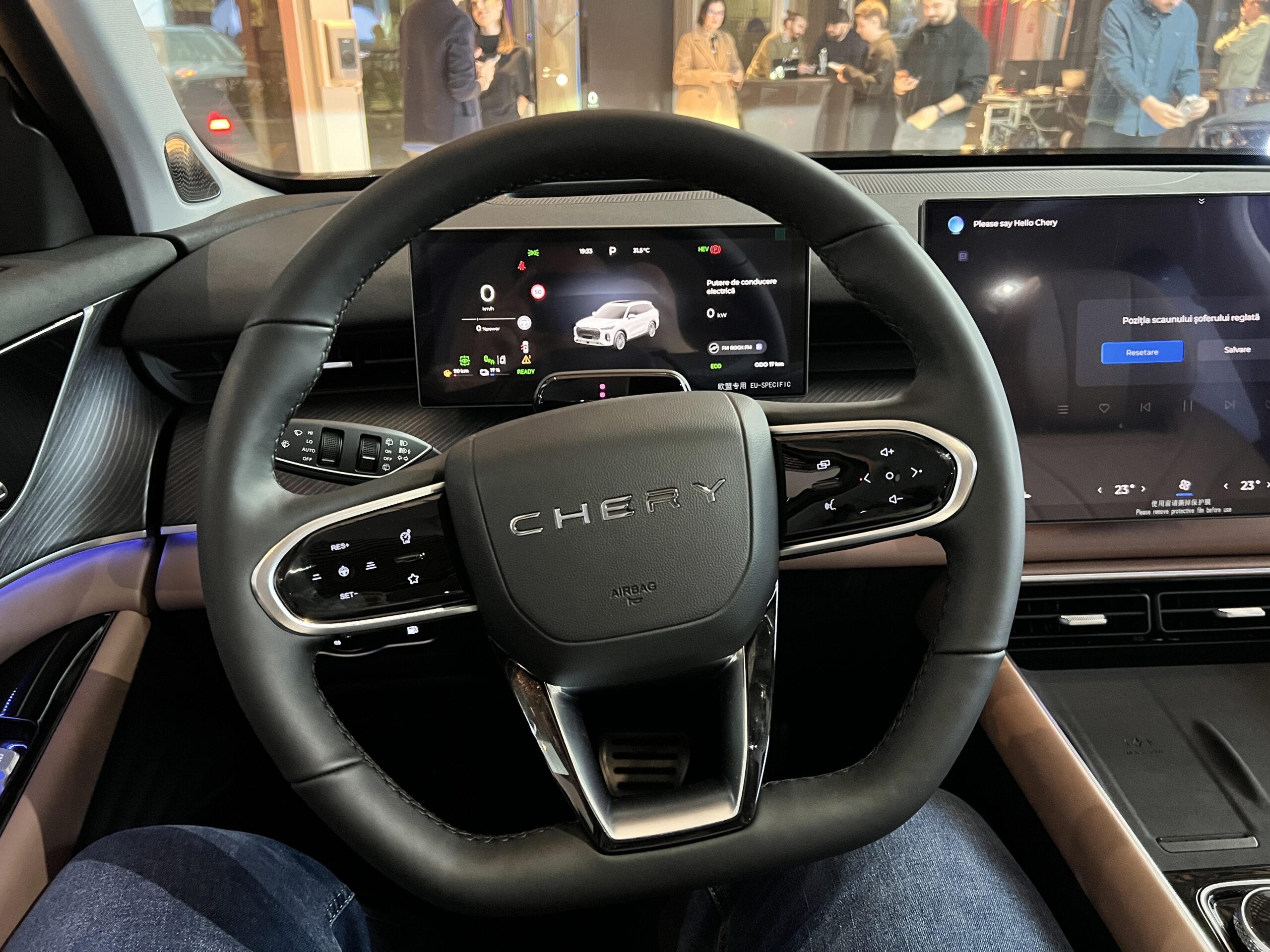 În fața acestuia stă un volan pe care l-am mai văzut și la Chery Tiggo 7 și Tiggo 8, cu aceeași suprafață tactilă pentru comenzile pentru pilotul automat, controlul ecranului secundar și elementele media. Fiind același volan, și calitatea e aceeași, ceea ce consider că nu este tocmai bine. Revenind la sentimentul de unitate pentru toată gama de modele, simt că Tiggo 9 trebuie să impresioneze cu ceva.