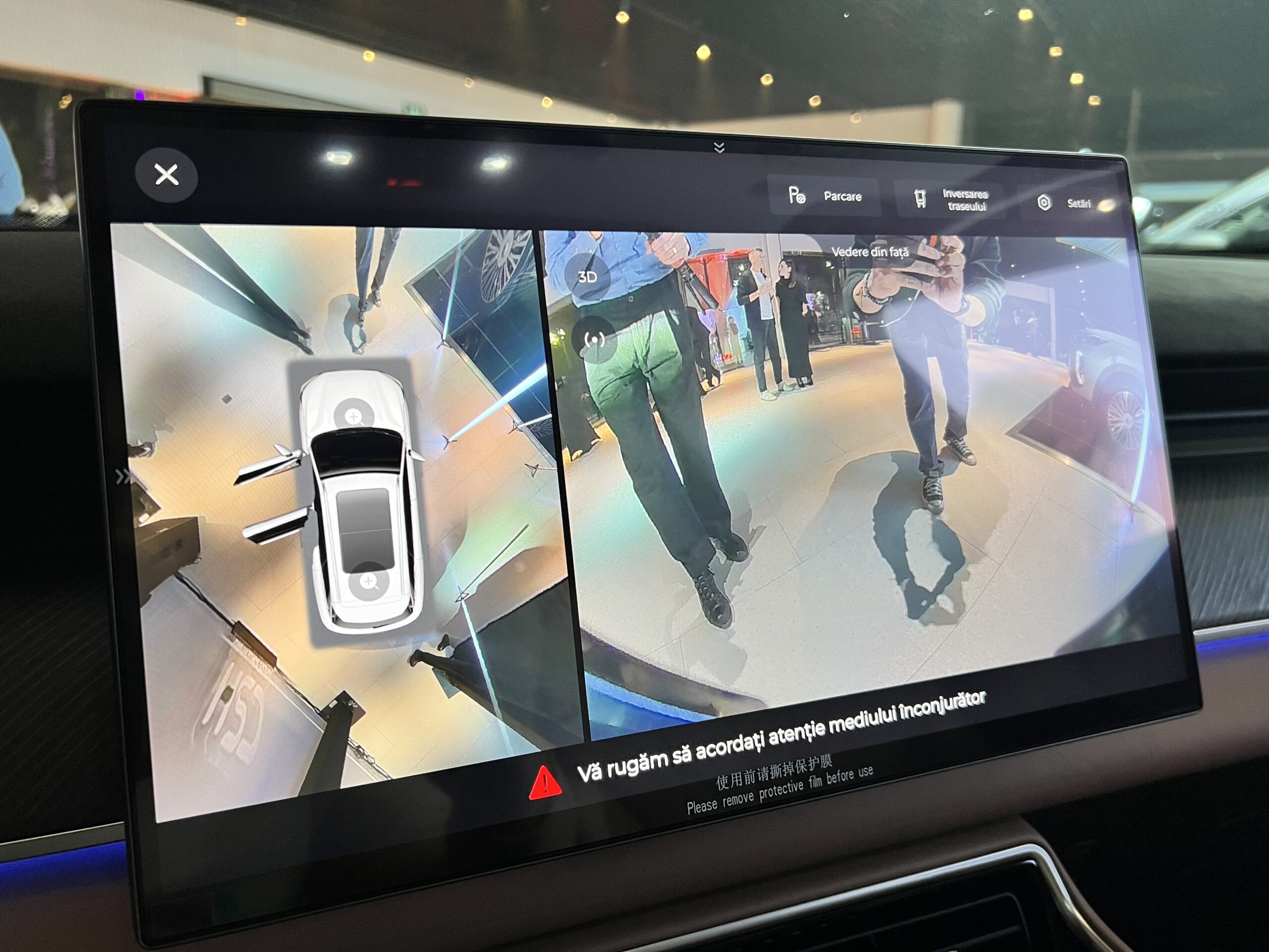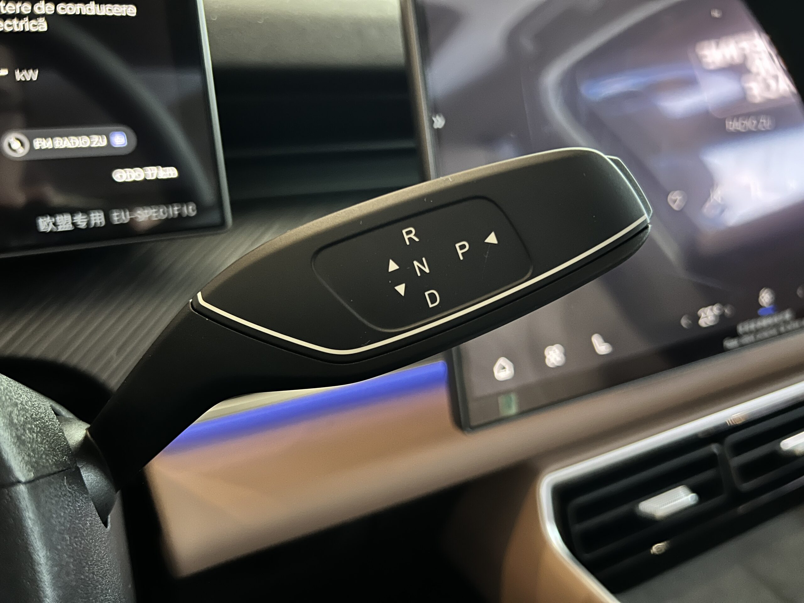 Totuși, să vorbim despre părțile bune, una dintre ele fiind ecranul central. Cu o dimensiune de 15,6 inch, o rezoluție 2.5K (2560 x 1440 pixeli) și un procesor Snapdragon 8155, acesta afișează toate comenzile mașinii. De la climatizare, la navigație, elemente multimedia și chiar funcții care nu ar trebui să fie integrate în ecran, precum frâna de parcare electrică. Da, atunci când puneți mașina în P (Park) frâna este acționată automat, dar consider că un buton fizic, separat de infotainment, este de preferat.
