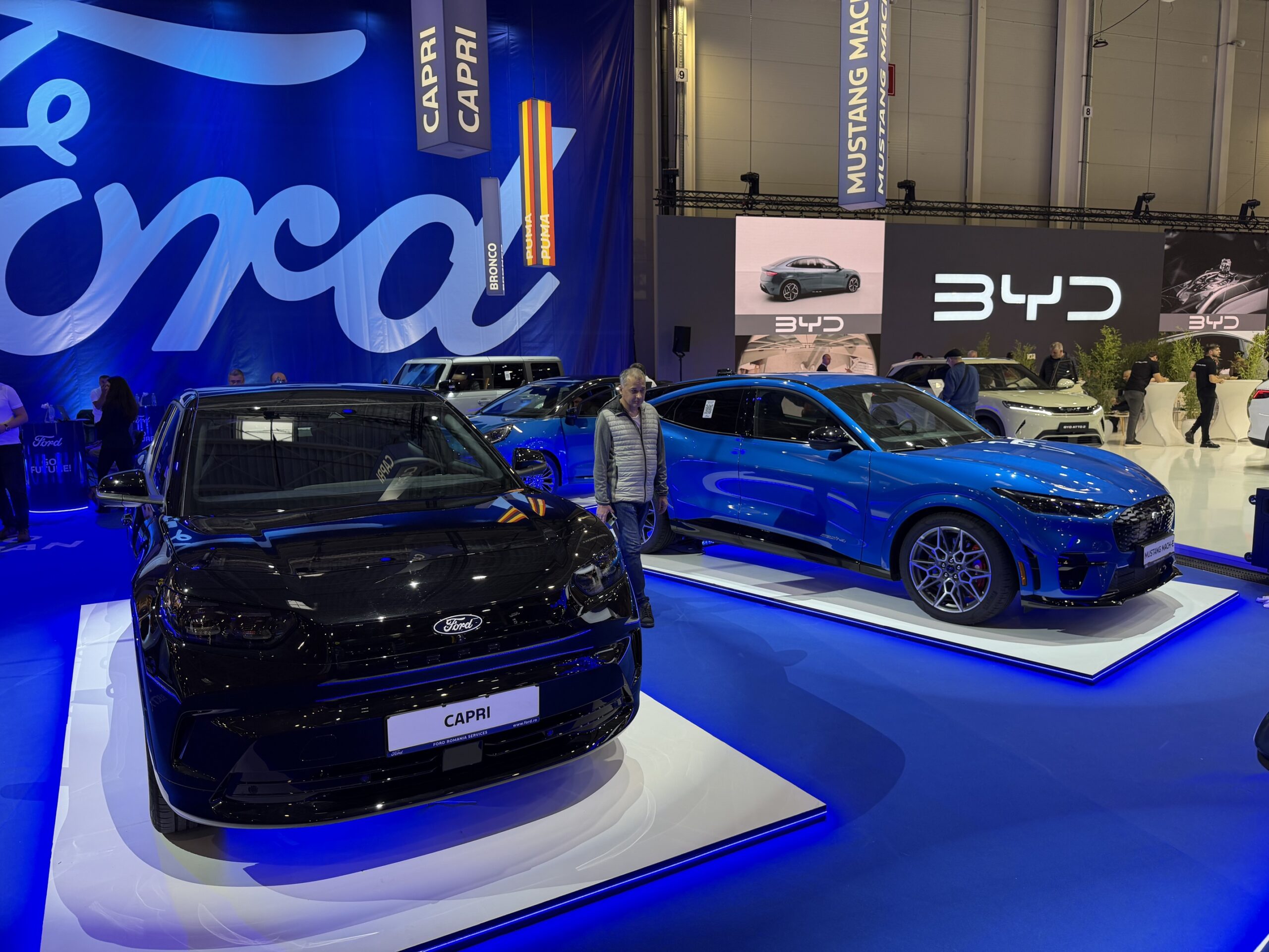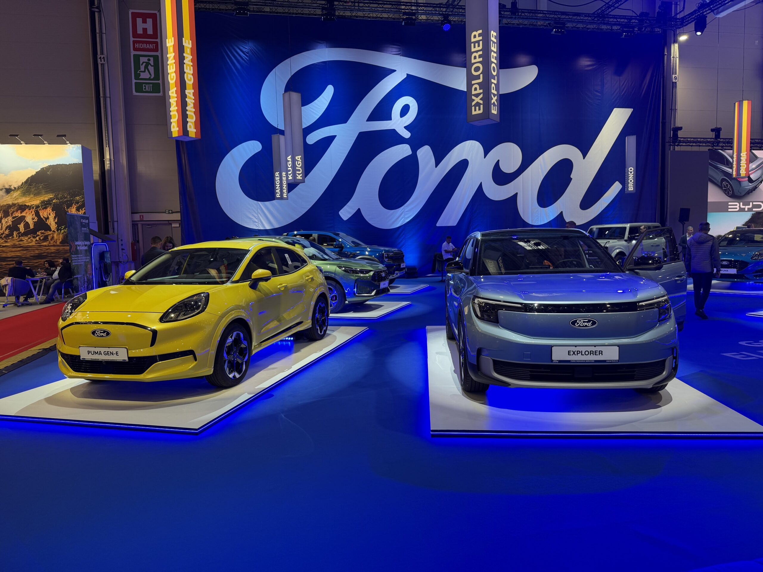 Deși o companie americană, Ford produce multe modele în Europa, inclusiv Puma electric care este produs la fabrica Ford-Otosan din Craiova. La stand au fost prezente și SUV-urile produse în parteneriat cu Volkswagen (Explorer și Capri), dar și cele două versiuni de Mustang, coupé-ul și crossover-ul electric Mach-E. De asemenea, camioneta Ranger, dezvoltată la comun cu VW Amarok, a fost și ea afișată, în versiunea sa Raptor.