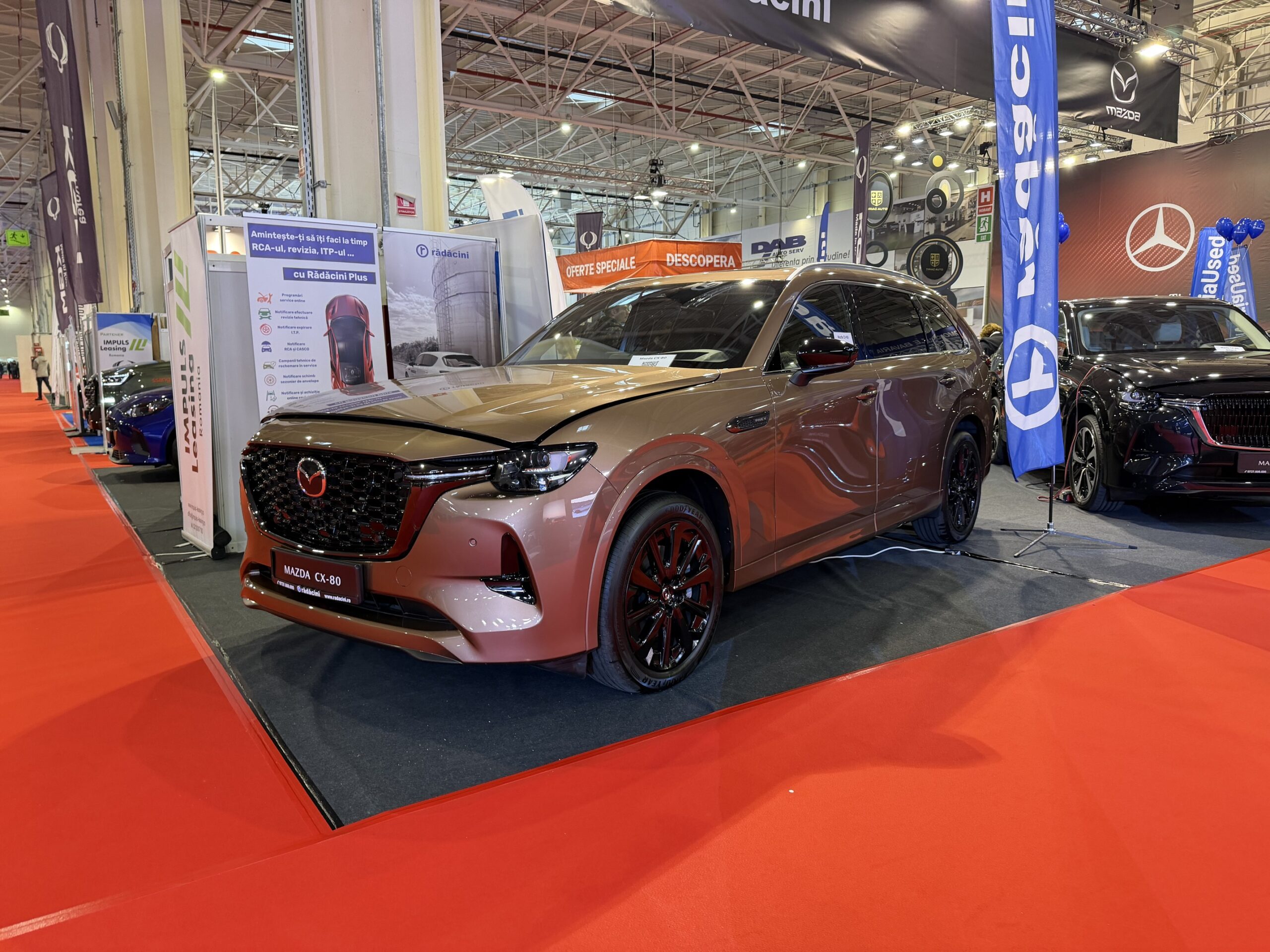 Mazda a venit la SAB cu SUV-urile CX-60, CX-80, dar și sedanul electric Mazda 6e. Lângă ele a fost așezat și roadster-ul MX5, care a stat și la baza modelului Fiat 124 Spider.
