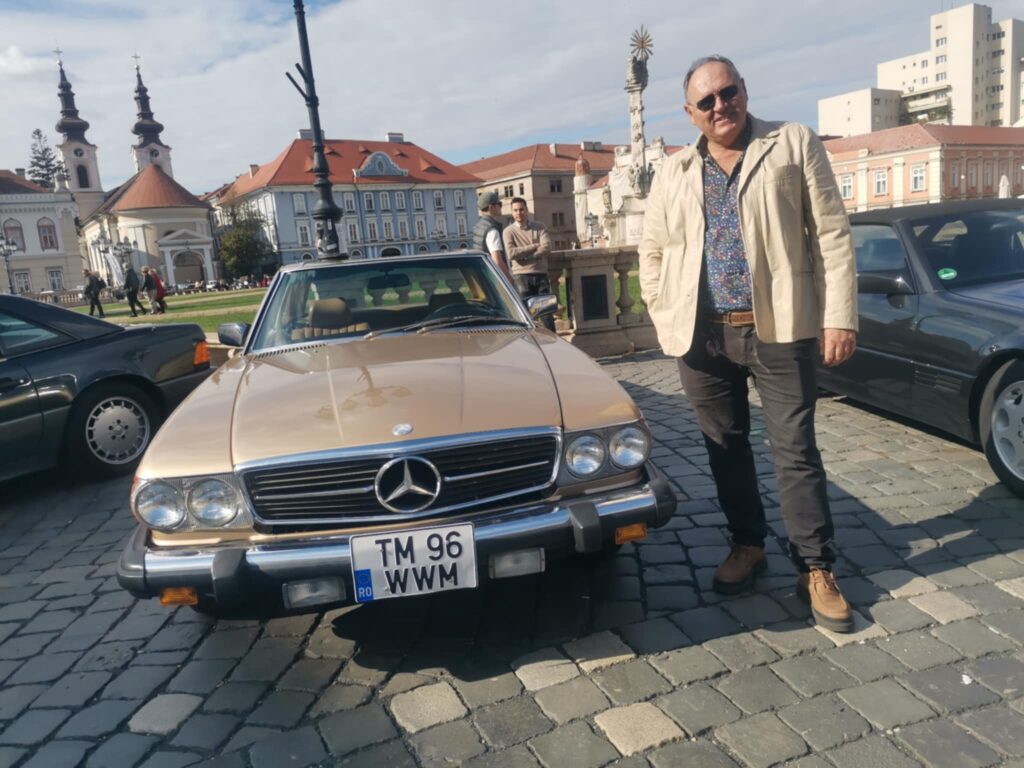 Pentru a fi încadrată ca mașină de epocă, aceasta trebuie să aibă o vechime de cel puțin 30 de ani. Așa se face că la paradă au putut fi admirate numeroase BMW-uri, Mercedesuri, VW-uri sau Dacii, care în urmă cu doar câțiva ani erau prezențe obișnuite pe drumurile noastre. Sunt însă și modele cu totul deosebite. Unul dintre ele îi aparține timișoreanului Simion Moșiu, care a cumpărat, pe un site de licitații din Olanda, un Mercedes SL din 1984.