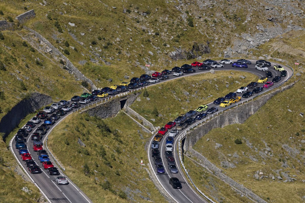 Anul acesta, contextul a fost cu atât mai special cu cât Transfăgărășanul a sărbătorit 50 de ani. Pentru a marca momentul, Porsche a prezentat în premieră ediția limitată 911 Carrera 4 GTS „Tribute to Transfăgărășan”. Doar zece exemplare au fost produse, iar șapte dintre ele au ajuns la Sibiu pentru a fi admirate îndeaproape. Liniile clasice ale lui 911, combinate cu elemente dedicate traseului legendar, au oferit contrastul perfect pentru Macan 4 electric, simbol al viitorului.
