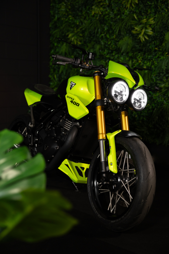 Viper 400 a fost realizată pe parcursul a nouă luni de echipa formată din Luca Ravezzani și Matteo, fondatorii atelierului Noisy-Style, având suportul designerului Rodolfo Frascoli, responsabil de stilul unor modele Triumph lansate după 2003, precum Street Triple 765, Trident 660 și gama Tiger 660, 900 și 1200. Proiectul urmărește reinterpretarea spiritului motocicletelor sportive Triumph, cu influențe vizibile din modelele Speed Triple 955i și 1050.