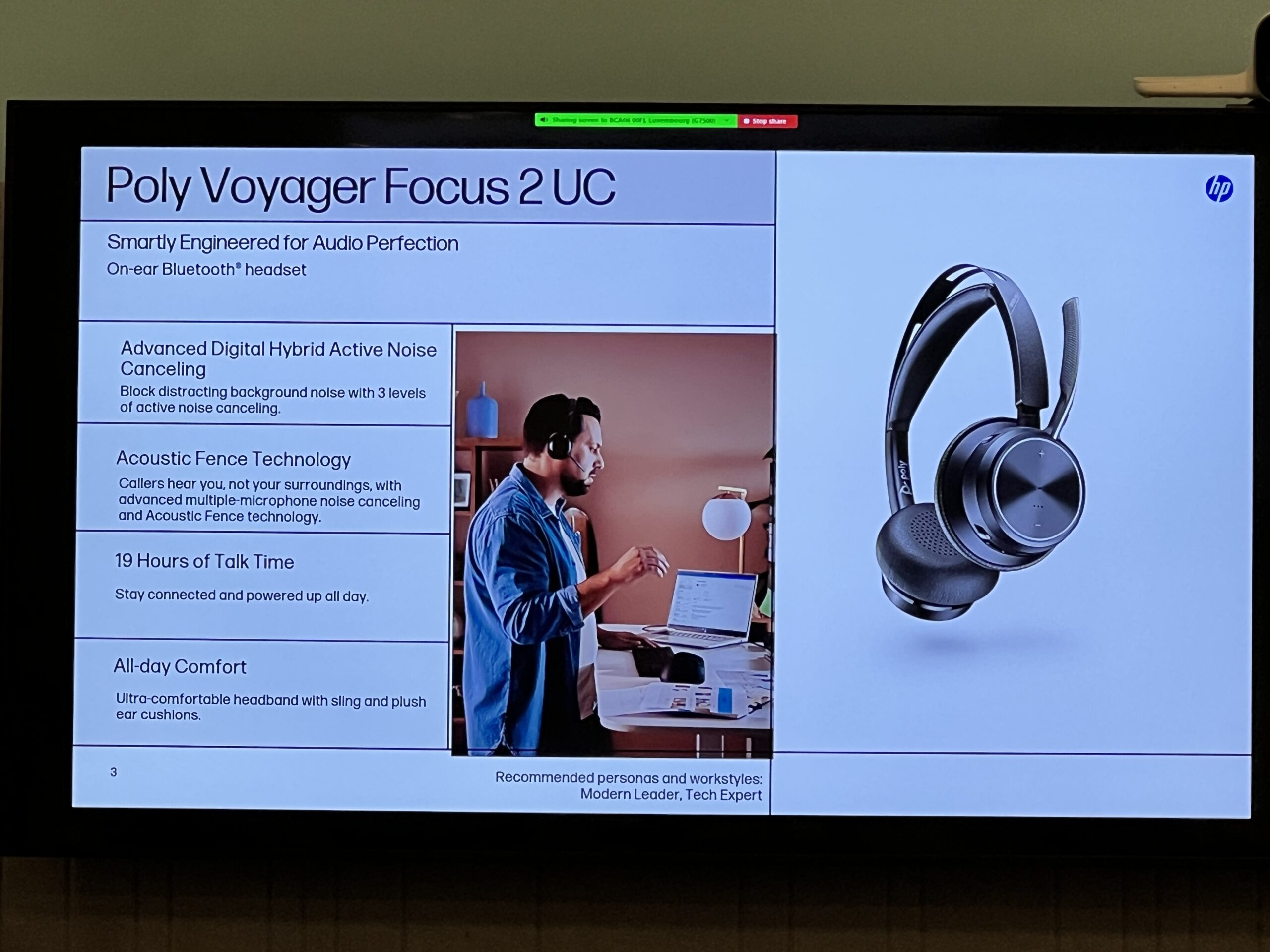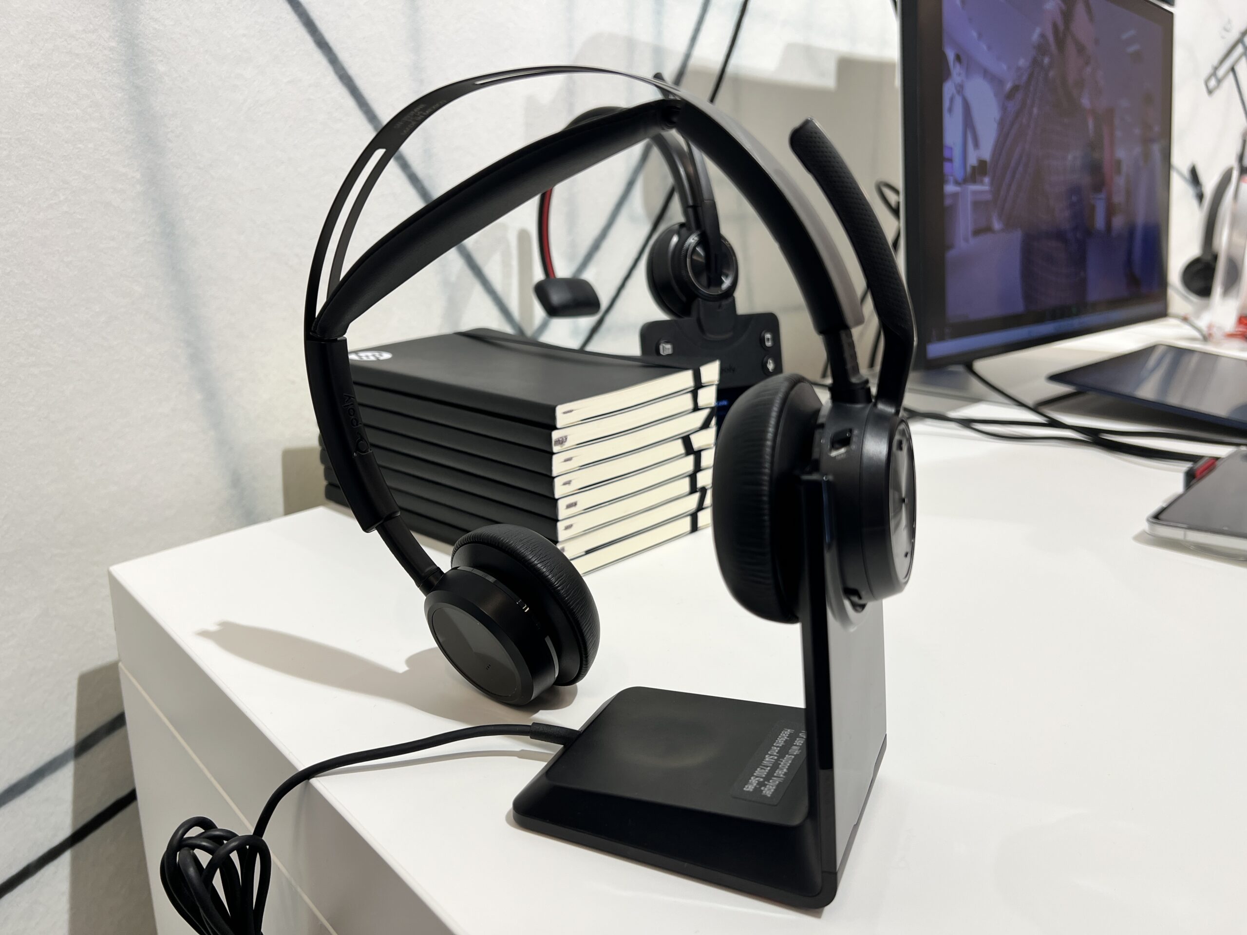 Că tot spuneam de Poly, să vorbim și despre ce produse au lansat ei. Compania a prezentat o suită de dispozitive audio dedicate pentru spații de lucru aglomerate sau zgomotoase. Spre exemplu, căștile Poly Voyager Focus 2 UC dispun de atenuarea zgomotului de fundal atât pentru difuzoarele căștii, cât și pentru microfon.