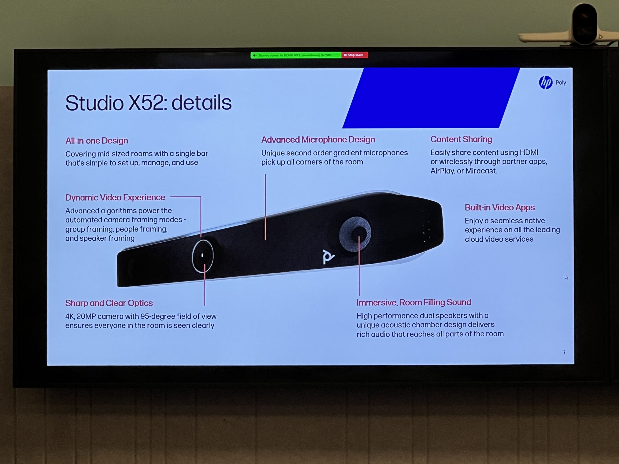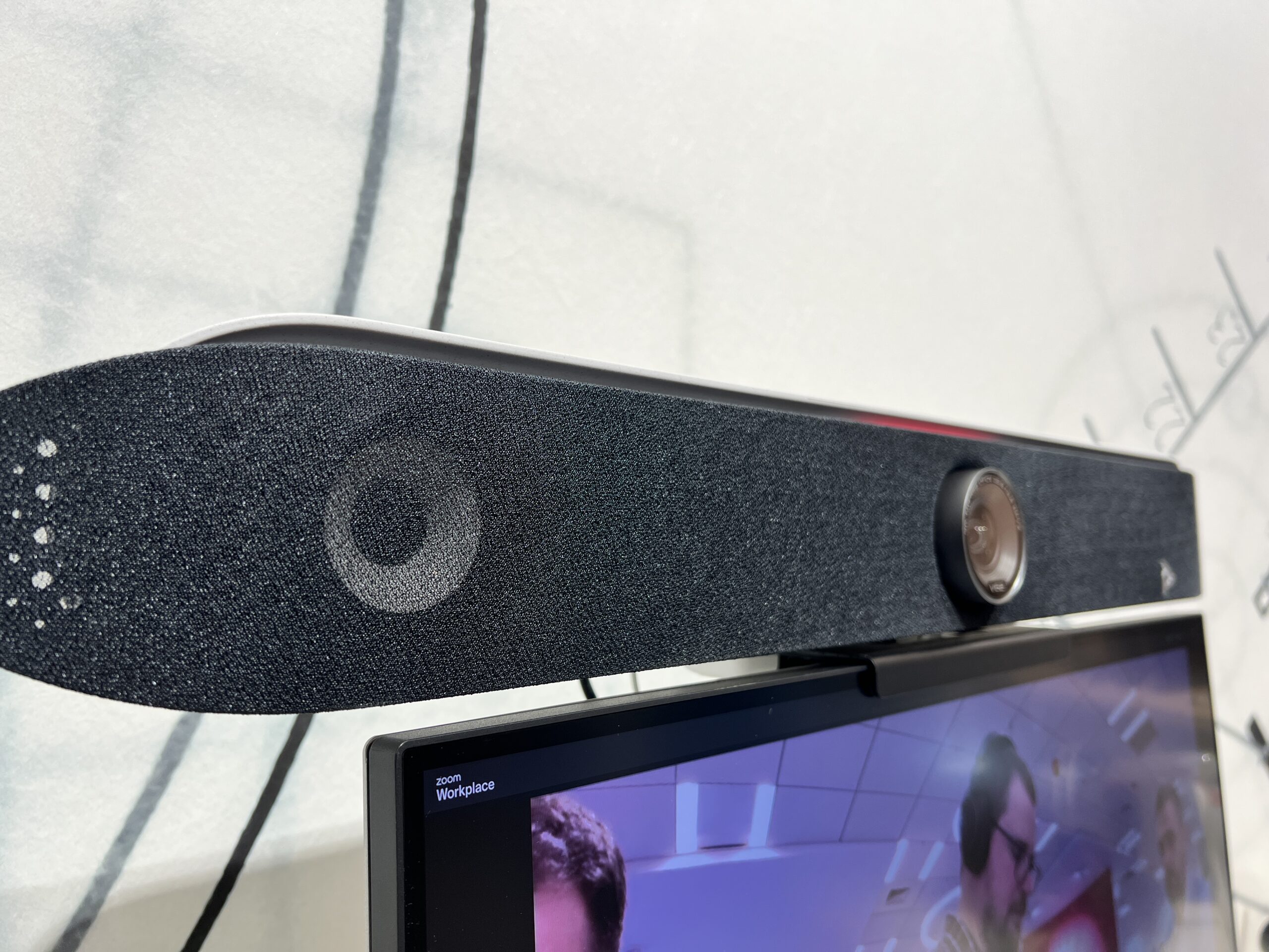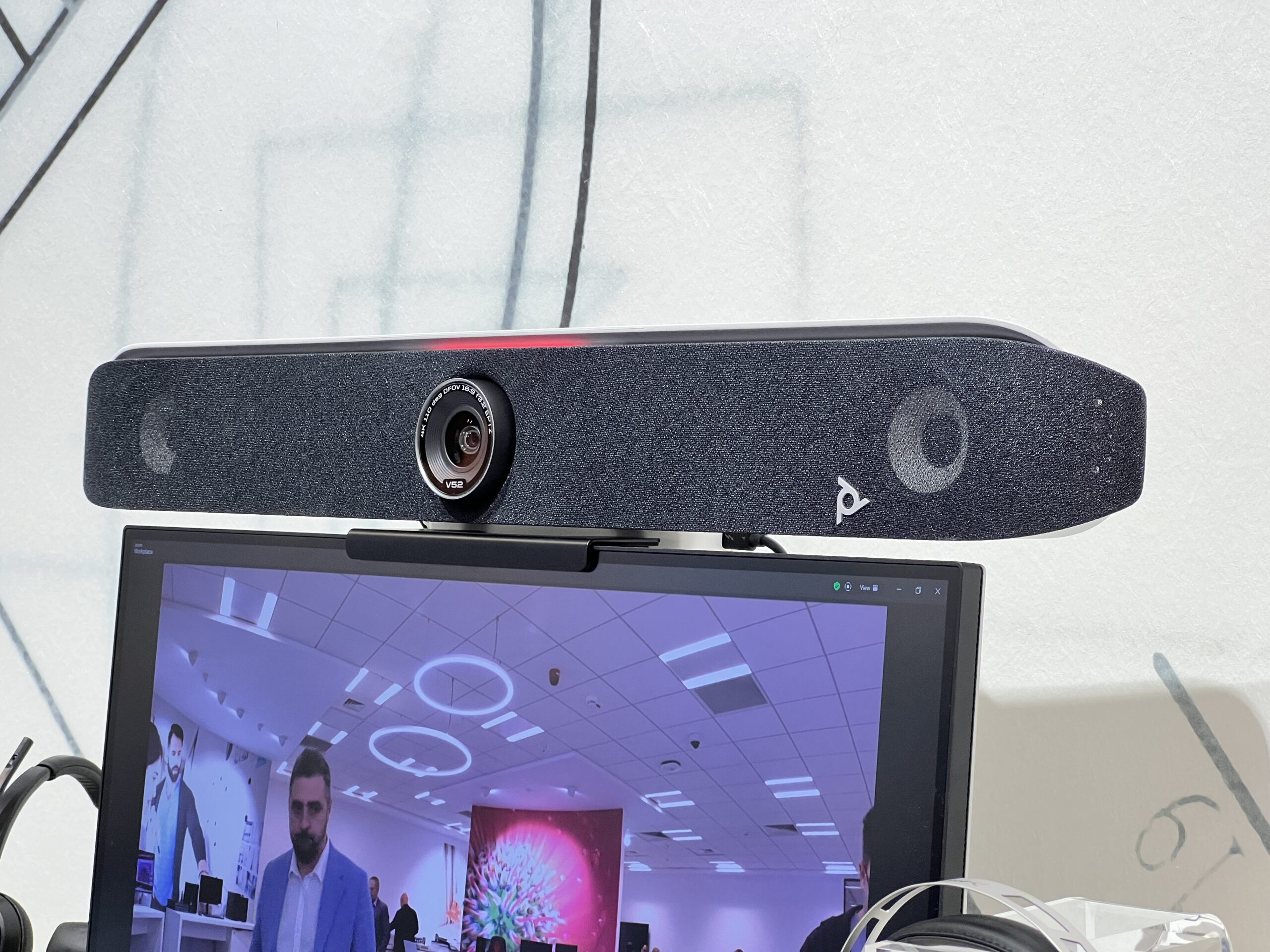 La fel este și Poly VideoBar X52 AVB. Probabil vă întrebați ce este un videobar. Ei bine, acesta este, în esență, o cameră web cu difuzoare și microfoane. Andrei Gănescu, Account Manager al diviziei de End User Sales a Poly, a vorbit despre o funcție interesantă a videobar-ului. Acesta poate detecta vorbitorul cu ajutorul unei camere 4K și îl poate pune în prim-plan. De asemenea, poate elimina zgomotele de fond cu ajutorul a patru microfoane dezvoltate intern de către companie.