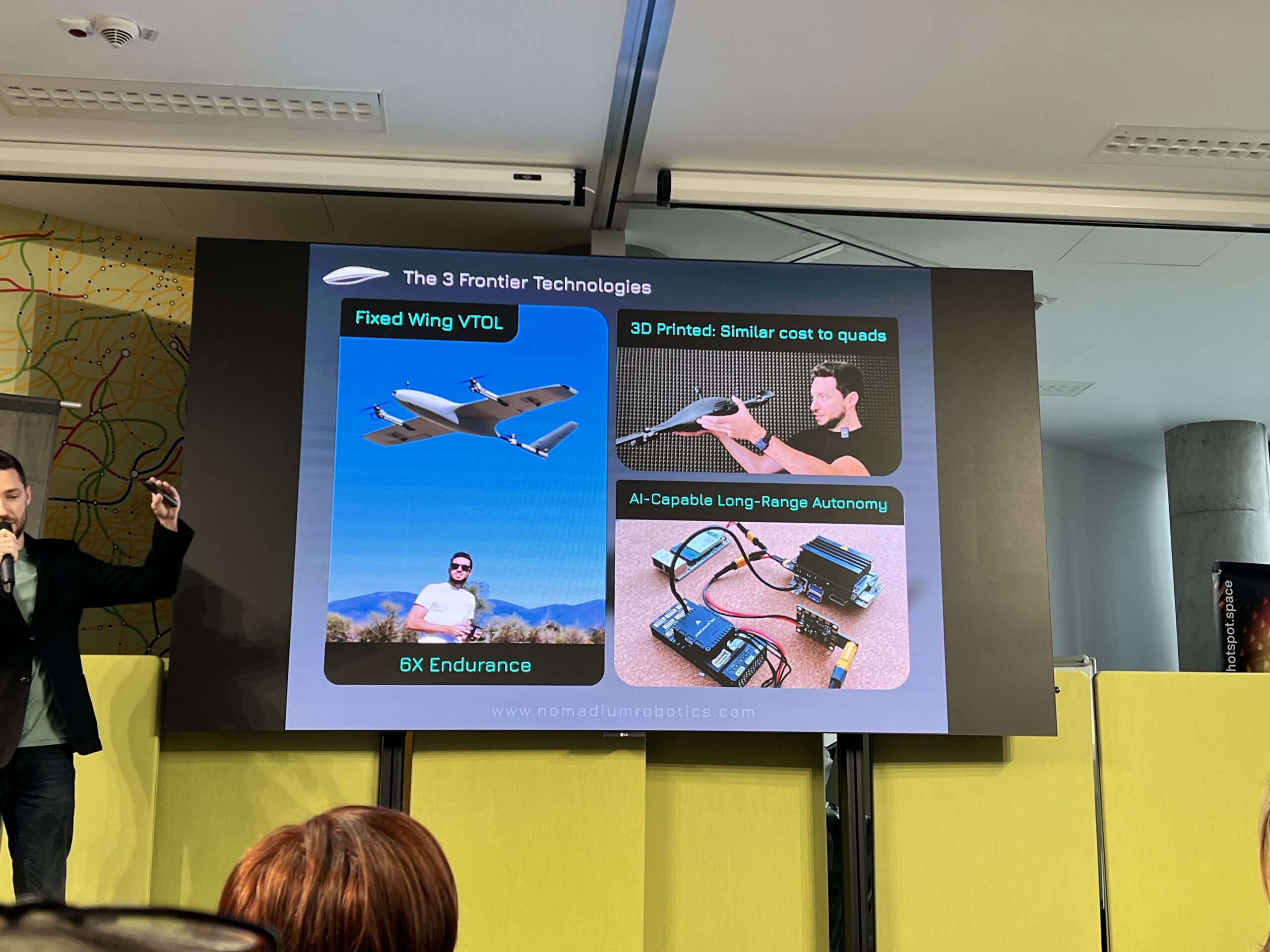 Nomadium Robotics este o companie ce dezvoltă drone printate 3D cu aripi fixe. Potrit lui George Petrov, CEO și fondator al companiei, acestea oferă o rezistență de până la 6 ori mai mare față de dronele normale, iar acestea pot deveni autonome cu ajutorul inteligenței artificiale.