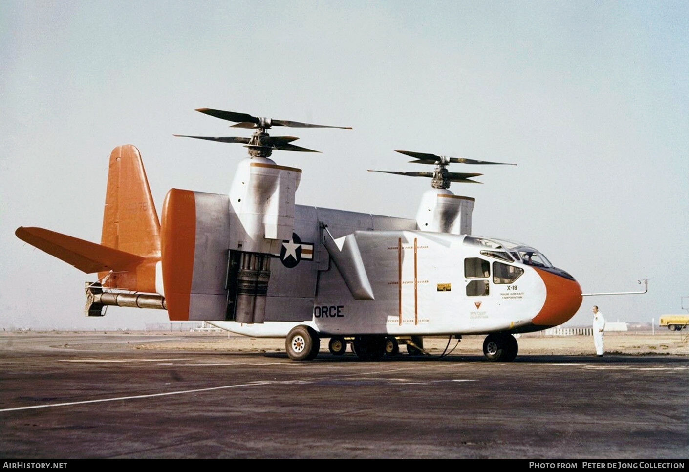 X-18 a zburat pentru prima dată pe 24 noiembrie 1959 și două probleme ale conceptului au fost curând clare. O aripă verticală mare acționează ca o velă de barcă, afectând controlabilitatea în ciclul de aterizare și decolare, iar dacă un set de motoare cuplate s-ar defecta, rezultatul ar fi dezastruos. Soluția la ultima problemă ar fi conectarea încrucișată a ambelor seturi de motoare la ambele elice, o soluție complexă utilizată astăzi la V-22 Osprey.