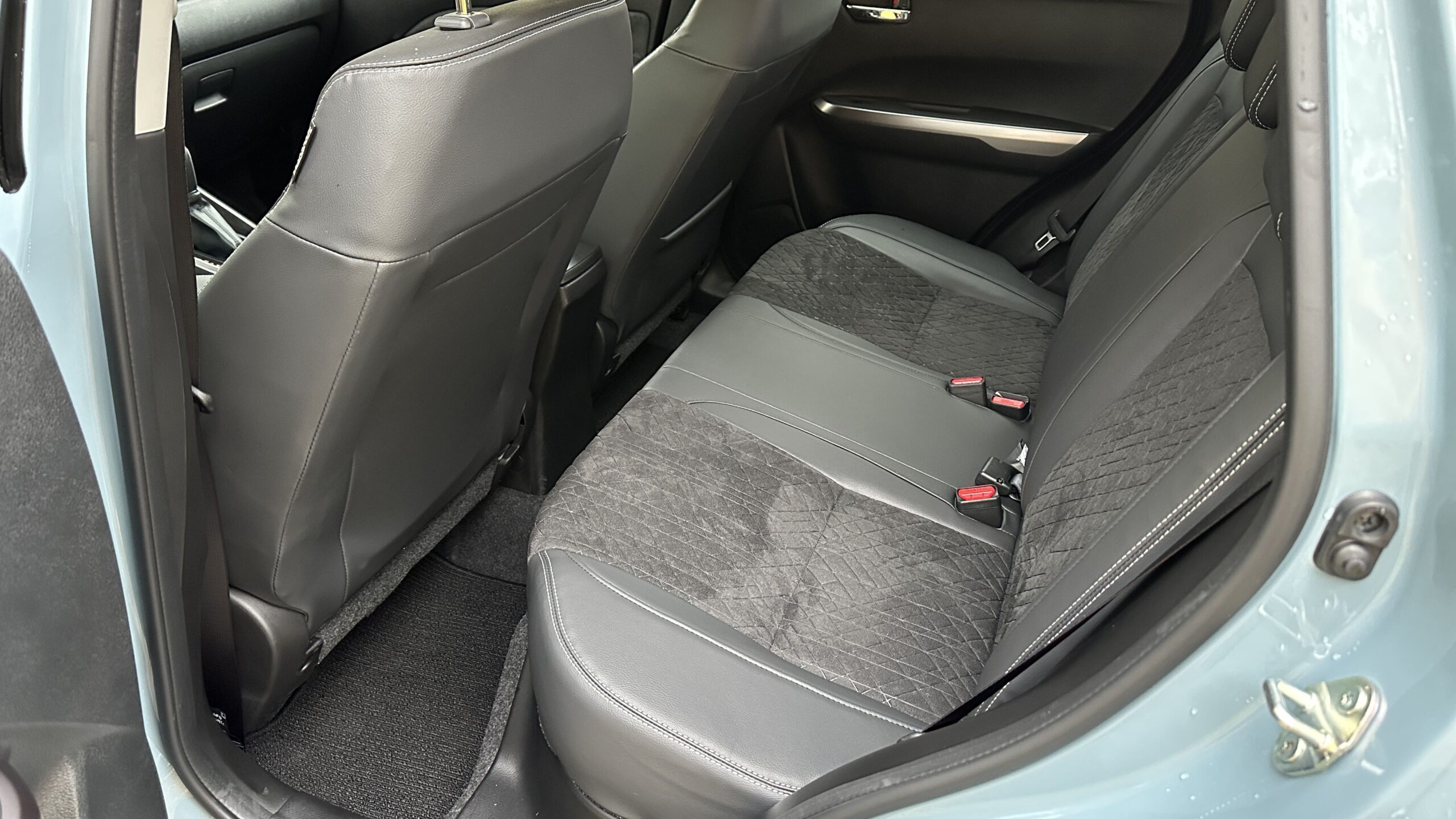 În spate, Vitara oferă un spațiu corect pentru doi pasageri, cu un tunel central redus care facilitează accesul, dar și cu un neajuns: picioarele nu intră ușor sub scaunele față, deoarece structura lor este mai înaltă. Bancheta însă compensează prin șezutul lung, care adaugă confort pe distanțe mai mari.