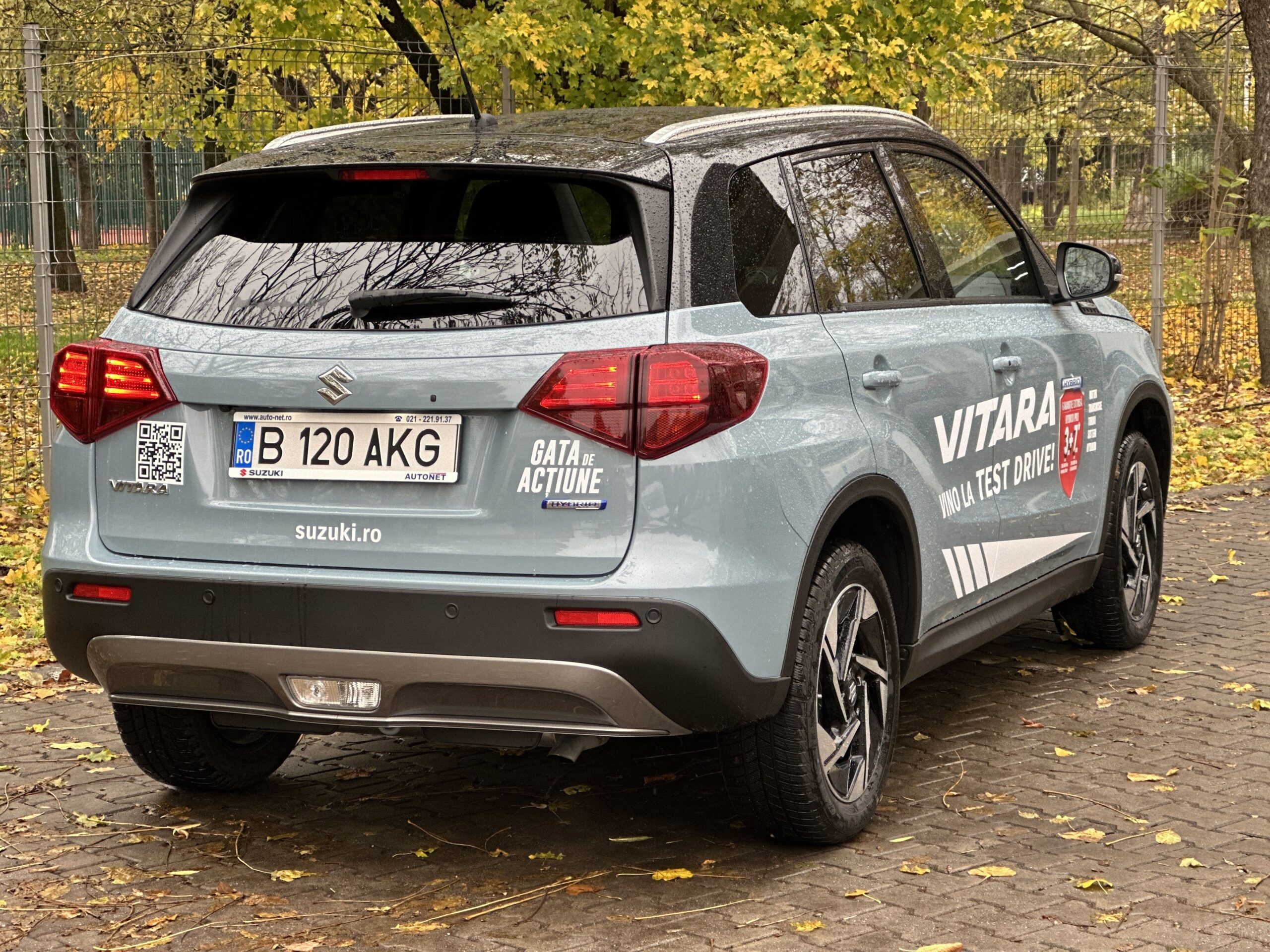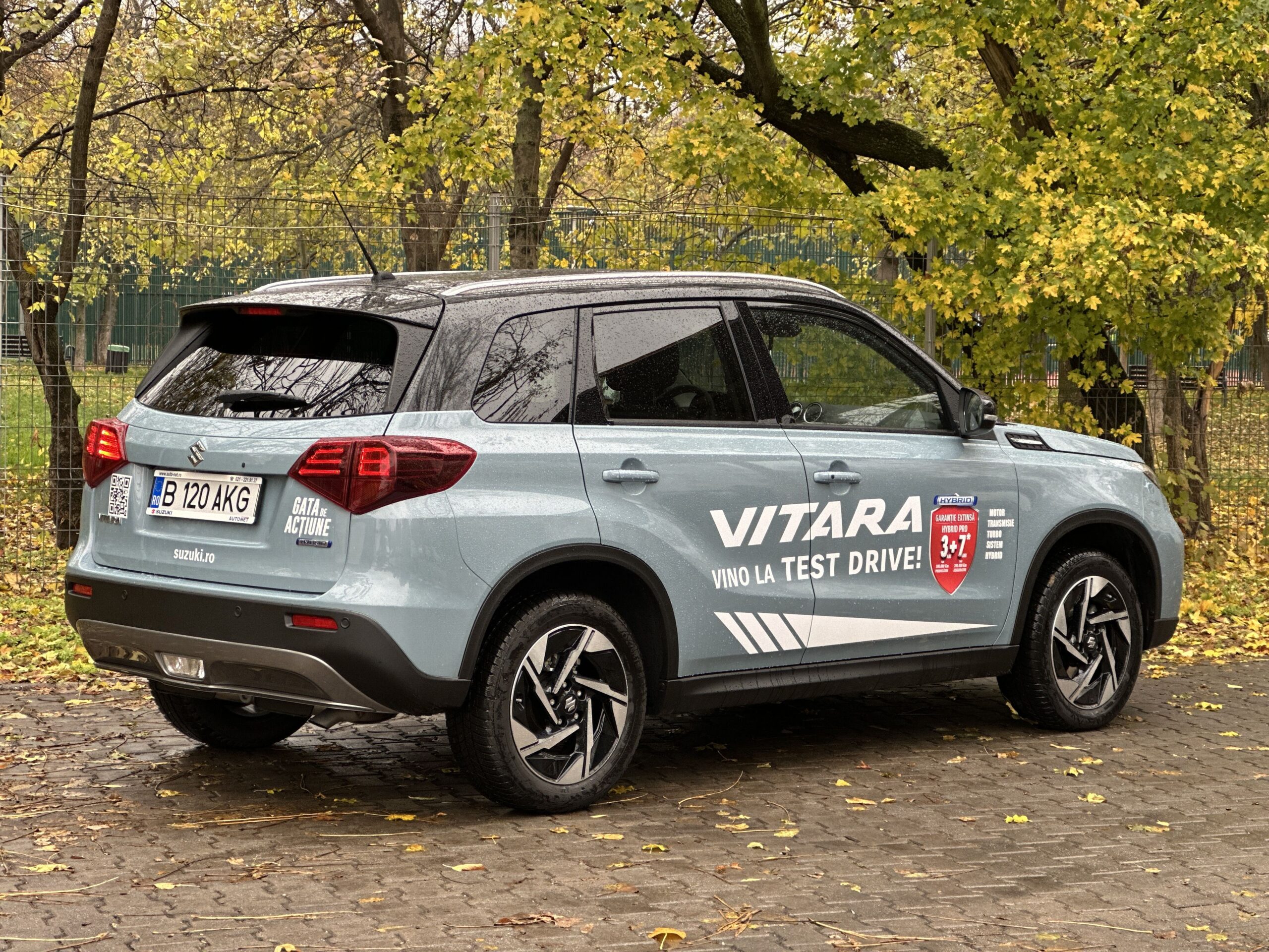 Sub capotă, ansamblul mild-hybrid de 48V folosește un motor termic de 1.373 cm³, cu 110 CP și 235 Nm, asistat de un mic motor electric de 16,6 CP și 49,8 Nm. Asistența electrică nu transformă Vitara într-un hibrid „veritabil”, însă ajută vizibil la plecările de pe loc, reduce vibrațiile și contribuie la un consum mai mic atunci când conduci relaxat.