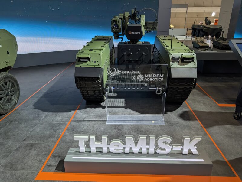 Hanwha și Milrem au semnat la începutul anului un memorandum de înțelegere pentru promovarea inițiativelor globale în domeniul roboticii terestre, iar roadele nu au întârziat să apară. La ADEX 2025, la standul Hanwha, a fost expusă o versiune numită THeMIS-K, iar „K” vine de la „Korea”.