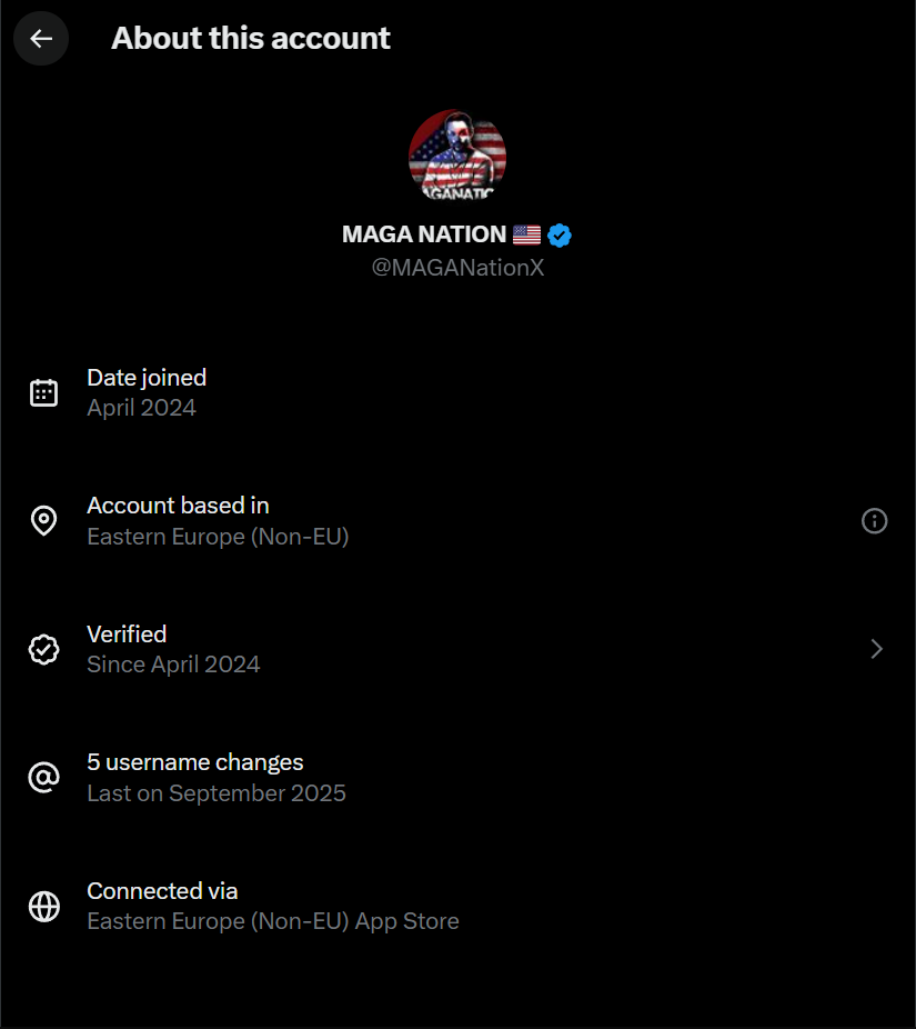 După lansarea funcției, detectivii online au folosit-o rapid pentru a determina că unele conturi care postează conținut în sprijinul președintelui Trump și al mișcării MAGA nu au sediul în Statele Unite. Un cont numit „MAGA NATION”, care are aproape 400.000 de urmăritori și postează de mai multe ori pe zi, are sediul în Europa de Est.