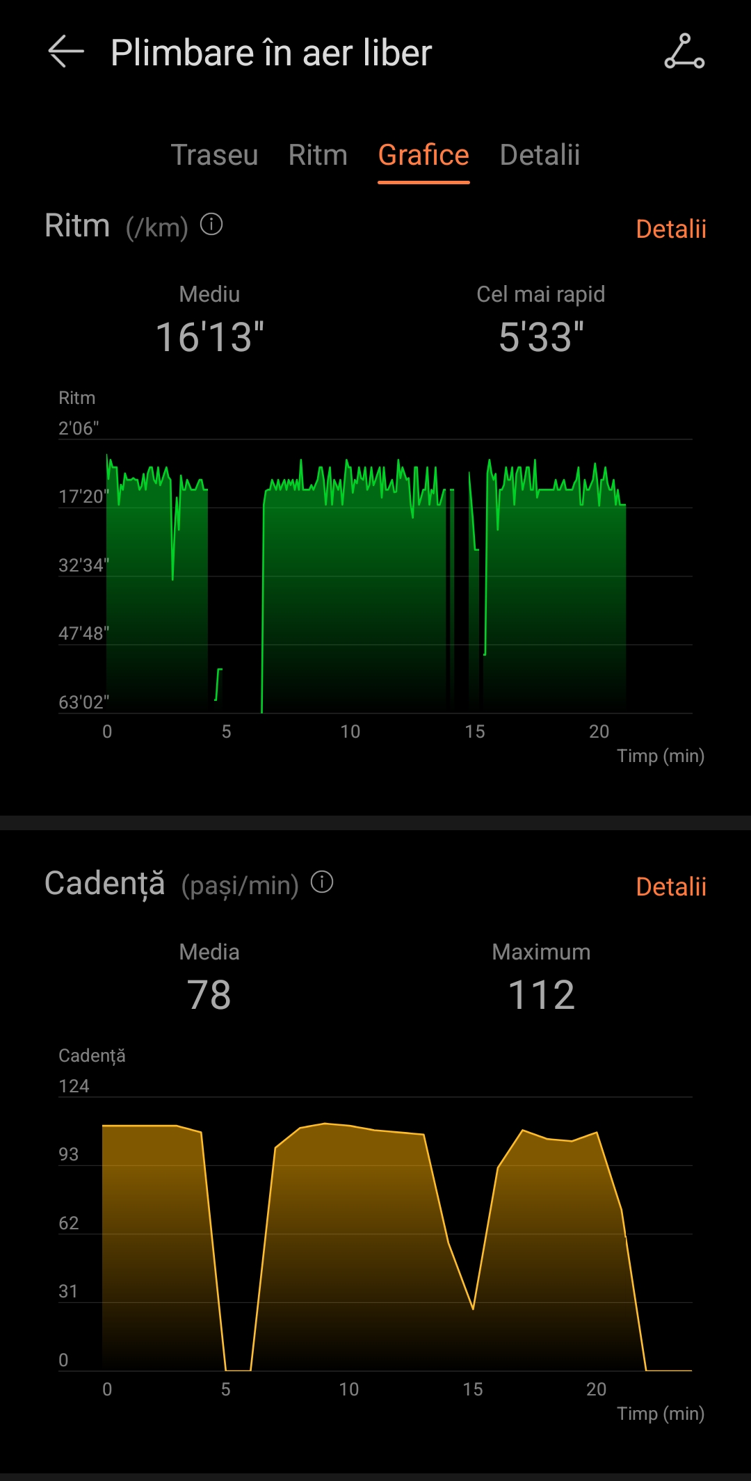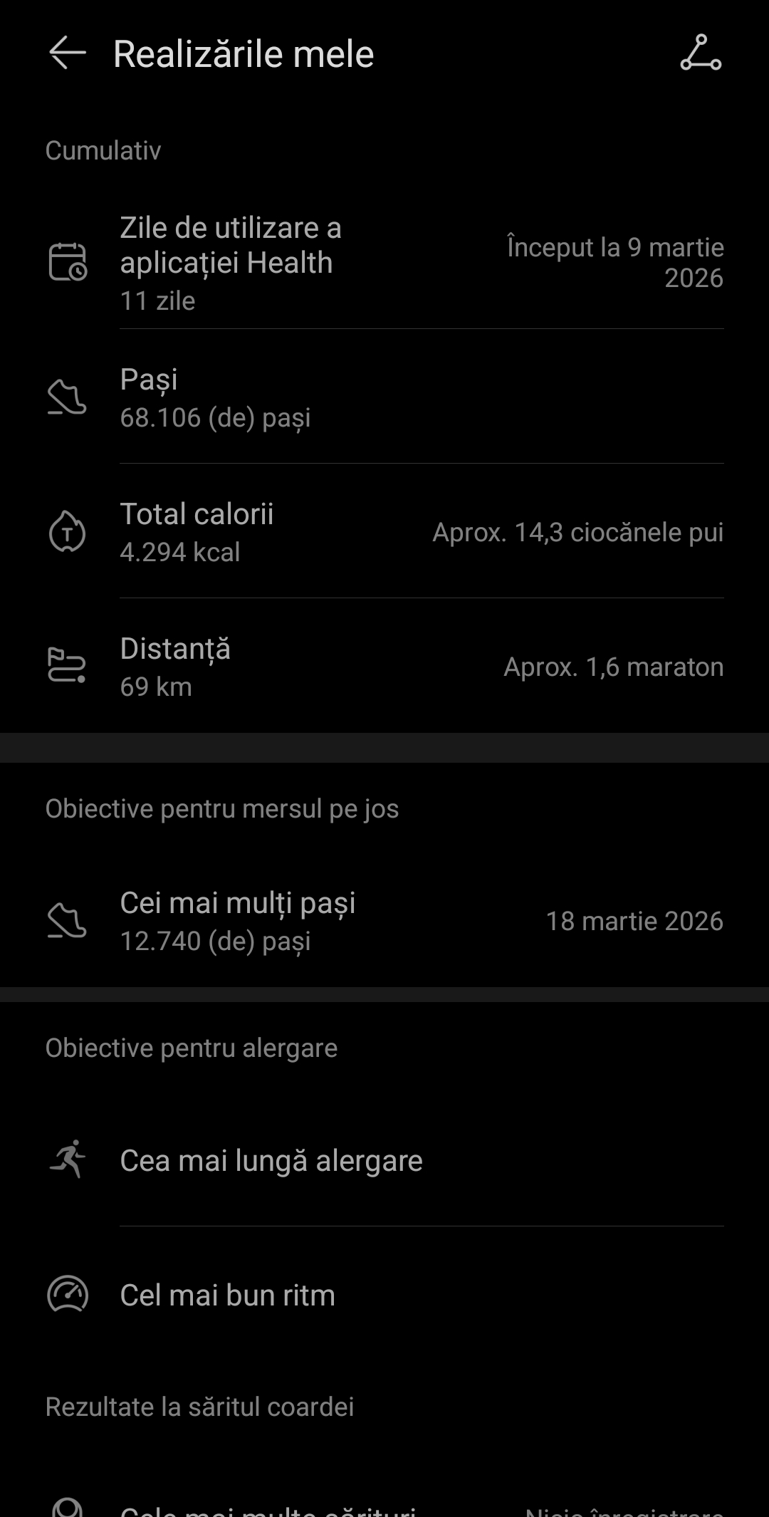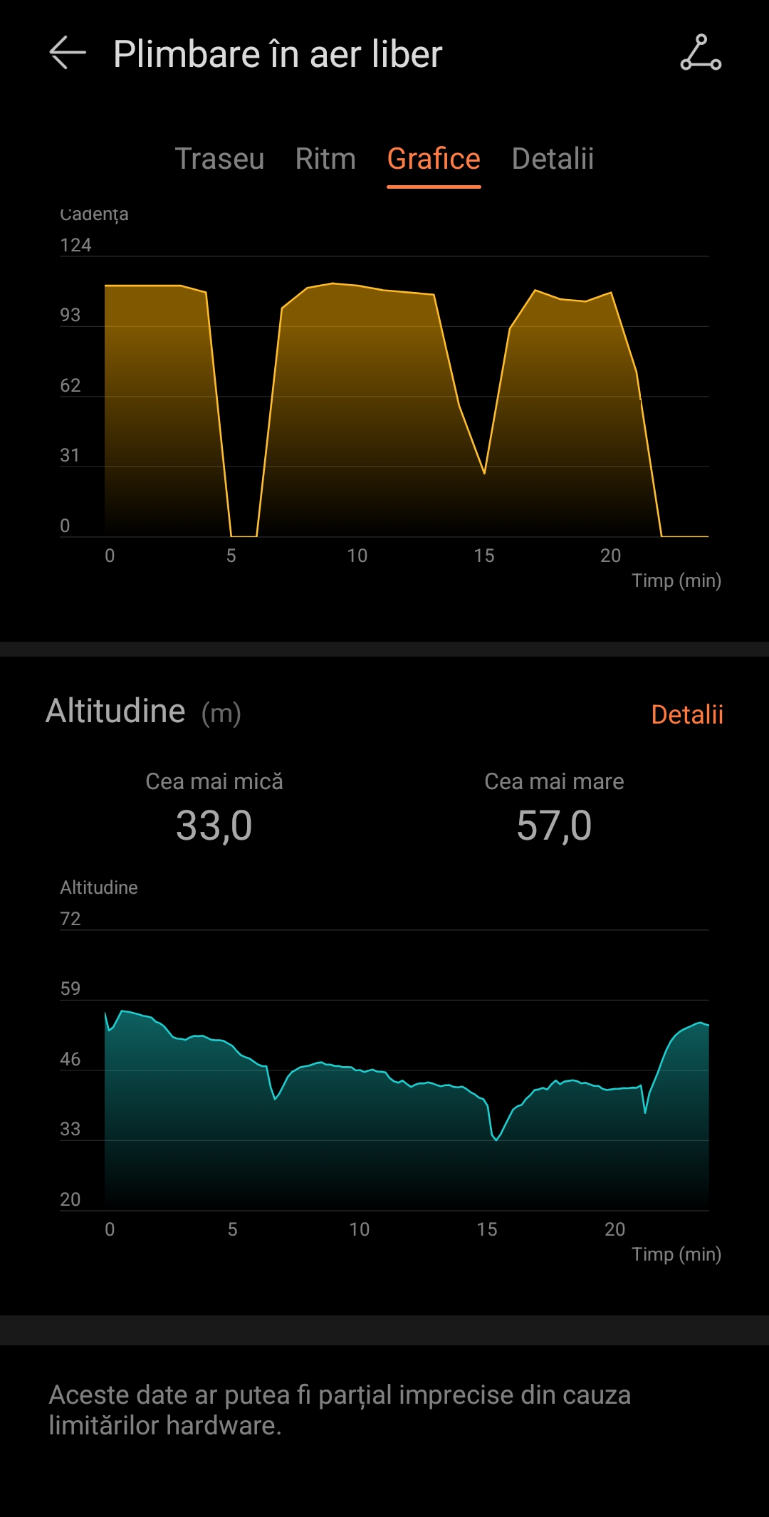 Un aspect mai puțin plăcut mi s-a părut aplicația Huawei Health, care pare uneori foarte aglomerată. Cei care utilizează aplicația pentru prima dată au de oferit foarte multe autorizații pentru majoritatea funcțiilor de monitorizare. În plus, ecosistemul de aplicații terțe este încă limitat față de competitori. Cel puțin momentan, compatibilitatea cu Spotify nu este disponibilă, iar cea cu Strava este limitată. Nu pot fi importate planuri de antrenament din alte aplicații.