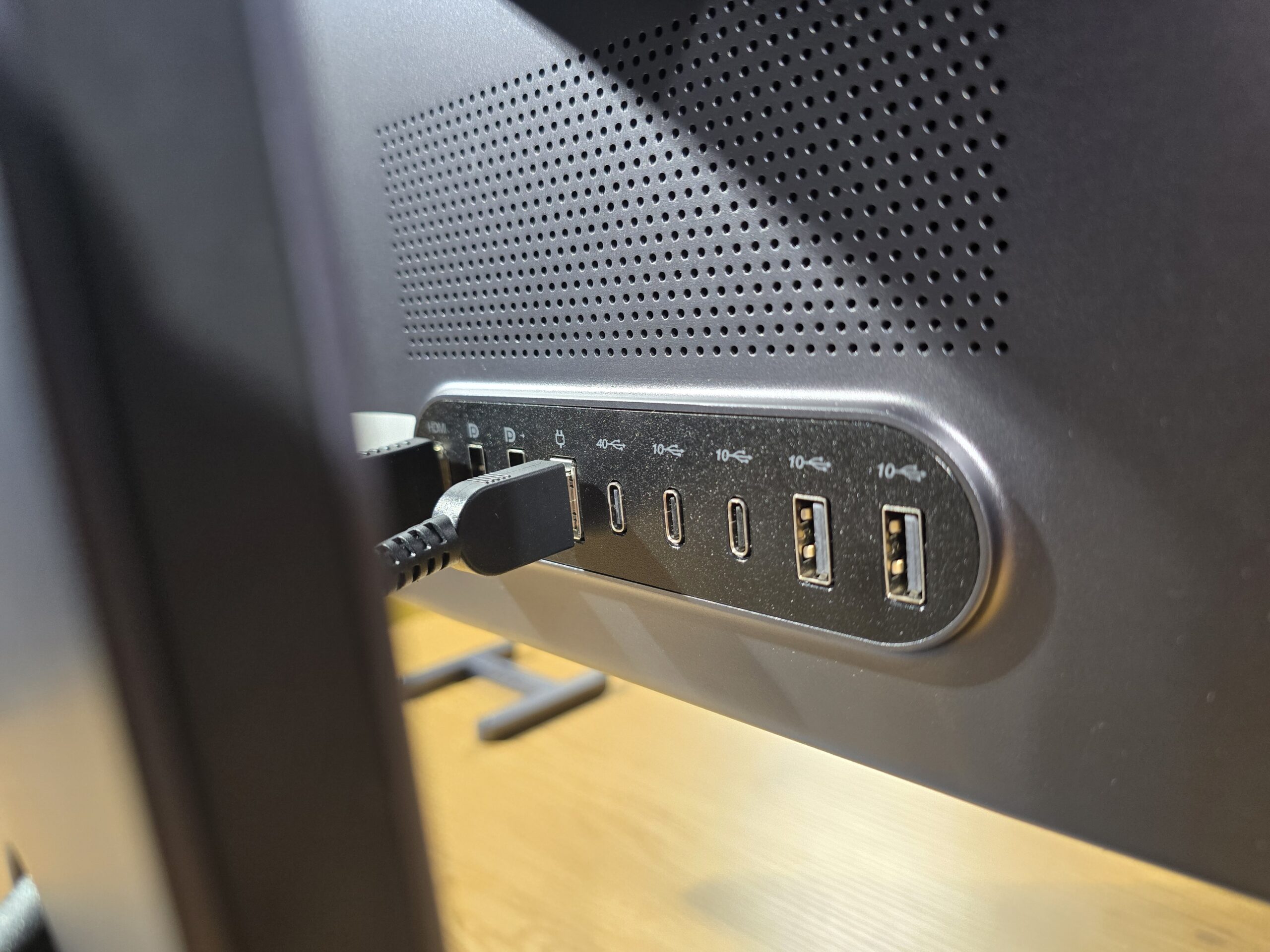 La capitolul porturi, Yoga Pro 27 este un adevărat hub de productivitate. Pe lângă HDMI 2.1 și DisplayPort 1.4, vedeta este portul USB-C de 40 Gbps.